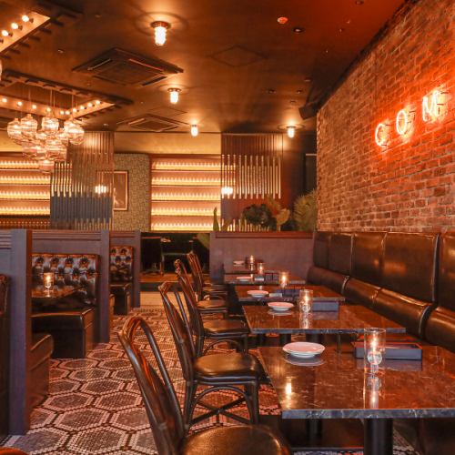 2名様でゆったり過ごせるソファ席を中心にご用意。照明を落とした落ち着いた店内で、周りを気にせず会話と食事を楽しめます。デートや記念日など、特別な夜を大切に過ごしたい方に選ばれています。