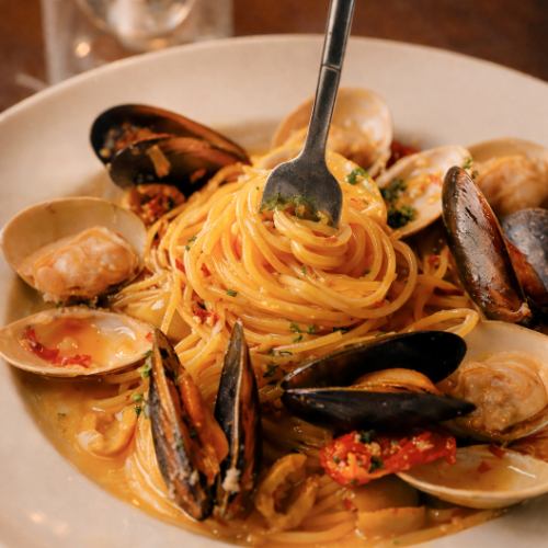 はまぐりとムール貝のペペロンチーノ